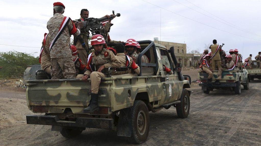 Equipos de soldados del Ejército yemení