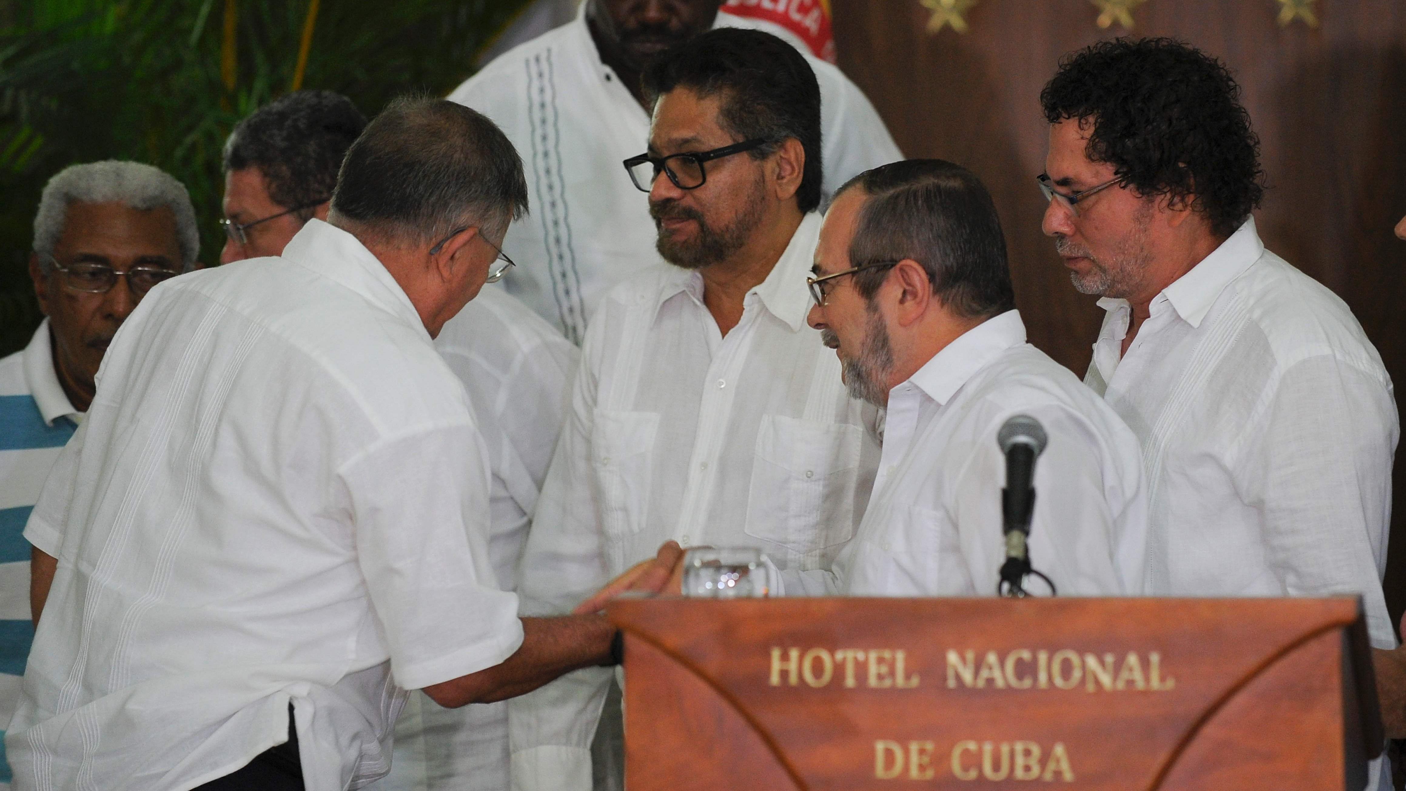 "Ordeno a todos nuestros mandos, a todas nuestras unidades, a todos y cada uno de nuestros y nuestras combatientes, a cesar el fuego y las hostilidades de manera definitiva contra el Estado colombiano a partir de las 00H00 (hora local) de la noche de hoy", proclamó el jefe máximo de la guerrilla de las Fuerzas Armadas Revolucionarias de Colombia (FARC), Timoleón Jiménez, a la prensa en La Habana, capital de Cuba.