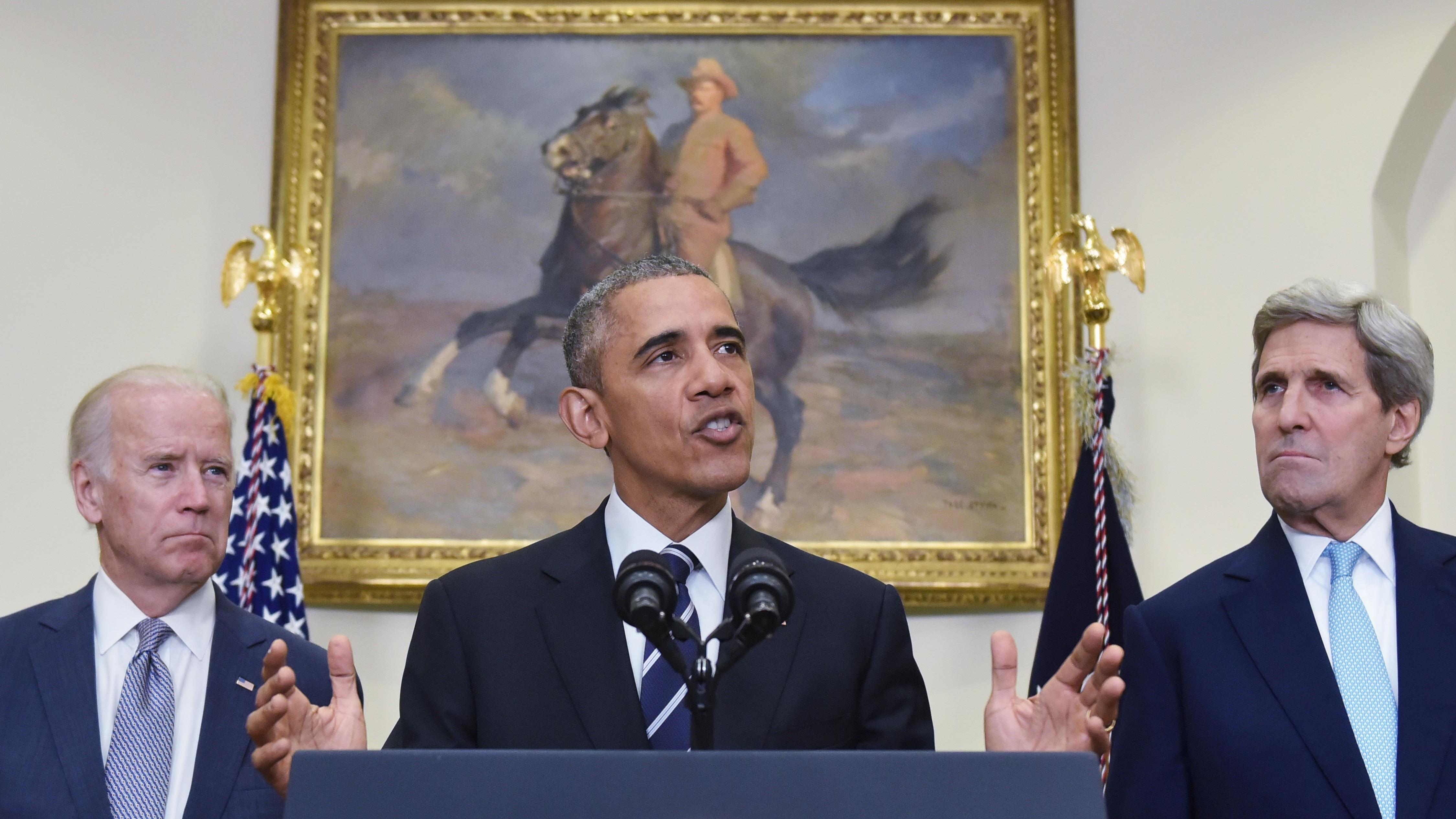 "Ese es el mayor riesgo al que nos enfrentamos: no actuar", prosiguió Obama, quien durante su alocución estaba acompañado de su vicepresidente, Joe Biden, y el secretario de Estado, John Kerry.