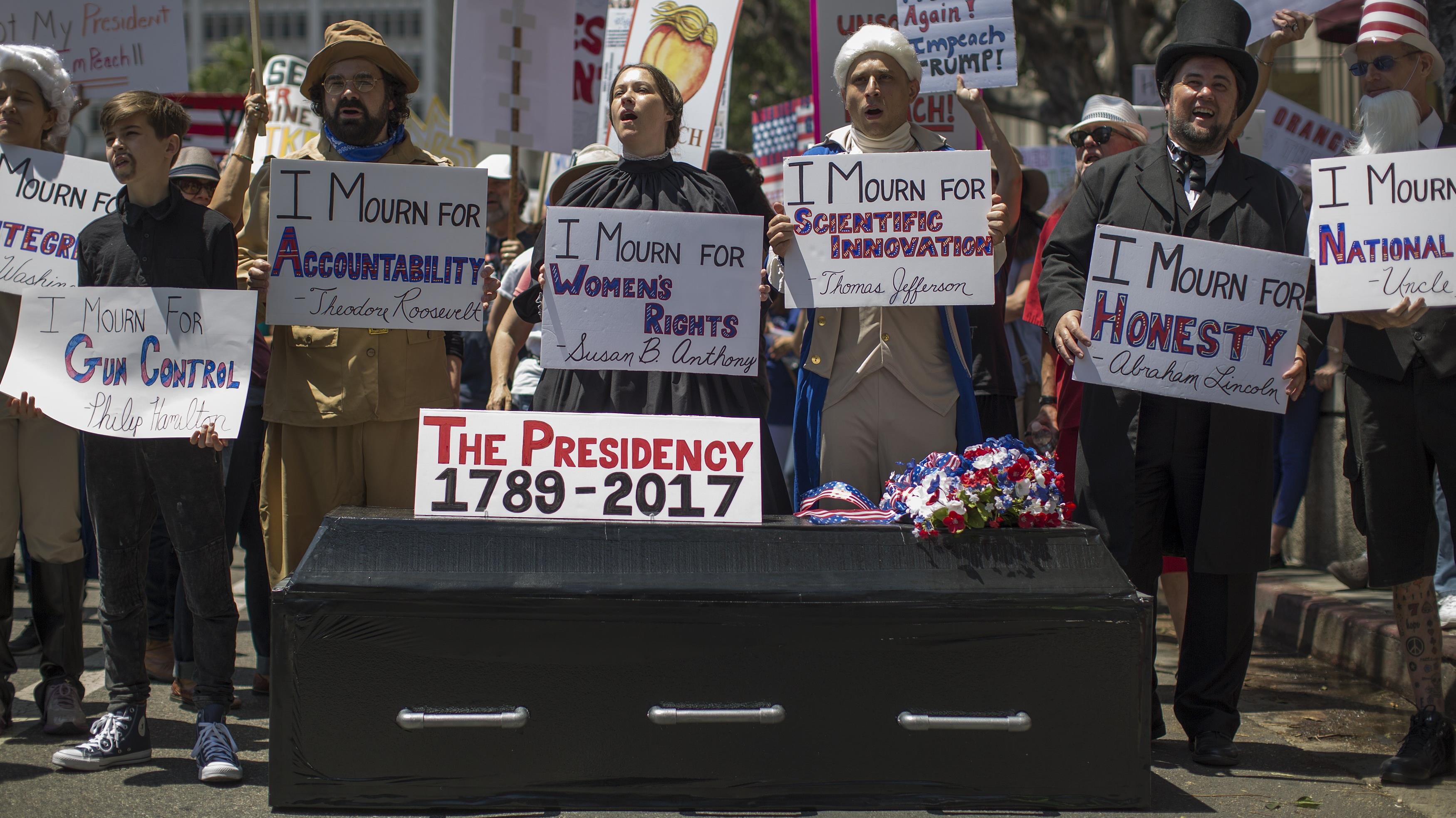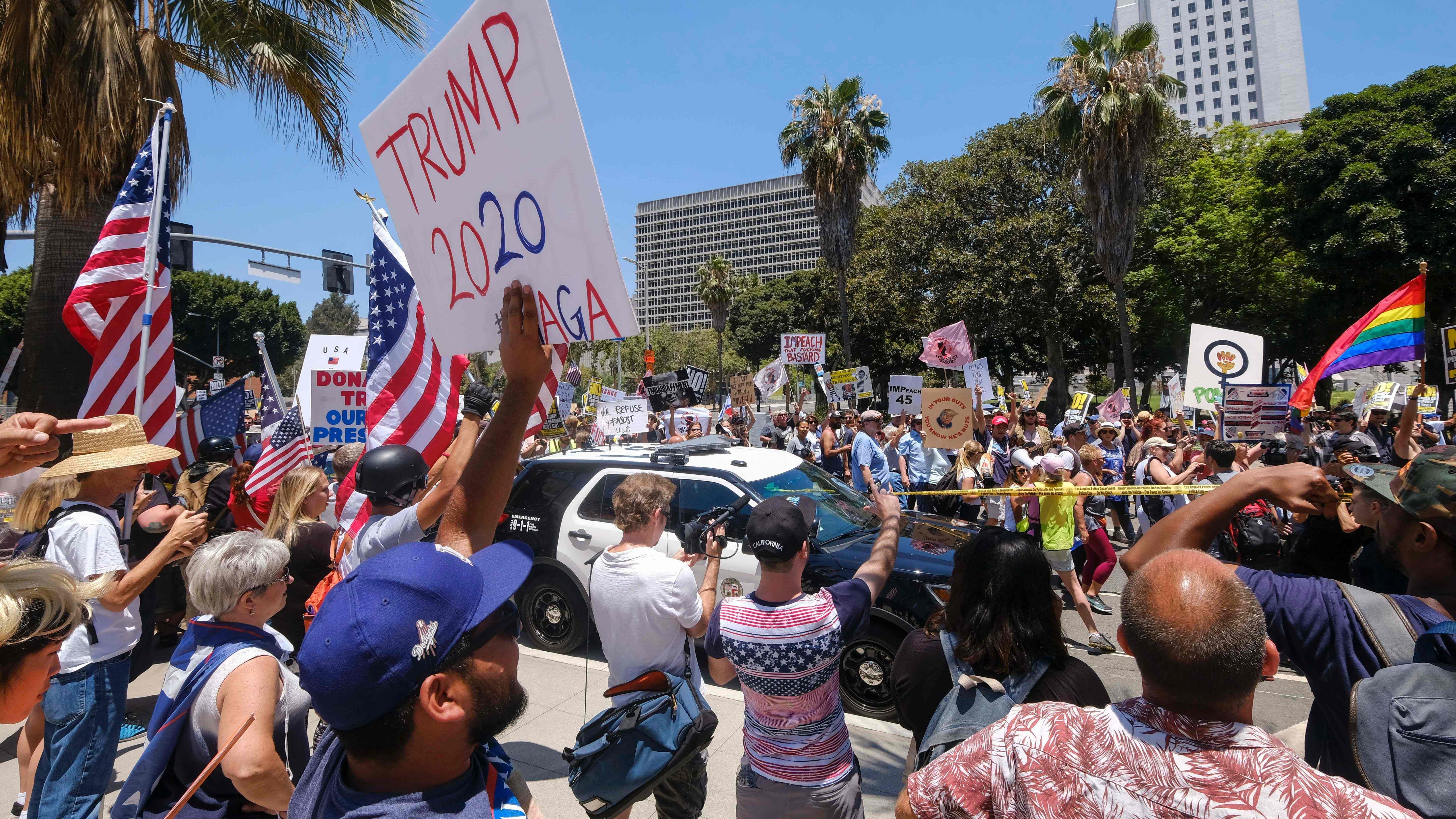 Miles de gargantas emitieron gritos para dejar claro su descontento ante las acciones del presidente norteamericano, Donald Trump, a menos de seis meses de haber entrado a la Casa Blanca.
