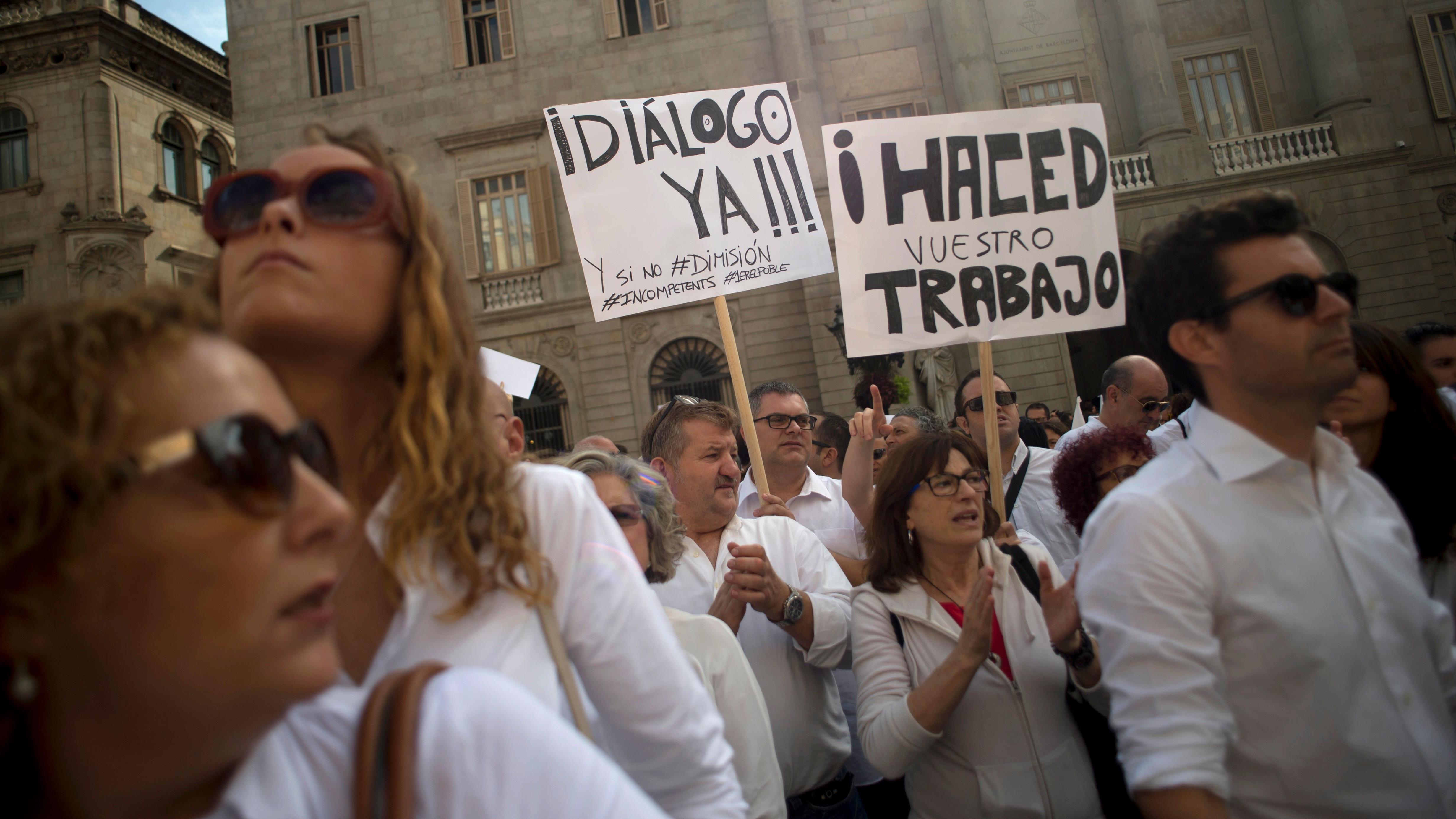 Más de 5000 participantes, según la Guardia Urbana en Barcelona, han reclamado a ambos Ejecutivos "que hagan su trabajo" y que aporten "más soluciones" y se han dirigido a la sede del Generalitat retomando el "Así, no" que lanzó el presidente de Cataluña, Carles Puigdemont, al rey Felipe VI en señal de rechazo a una declaración unilateral de independencia.
