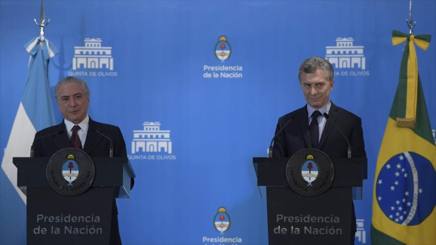 “La República Bolivariana de Venezuela, en ejercicio legítimo de la presidencia pro témpore de Mercosur, rechaza las amenazas y agresiones proferidas por el presidente de la República Argentina, Mauricio Macri, y del presidente de facto de la República Federativa de Brasil, Michel Temer, quienes persisten en su acción para implosionar y destruir el Mercosur”, denunció el lunes el Ministerio venezolano de Asuntos Exteriores a través de un comunicado.