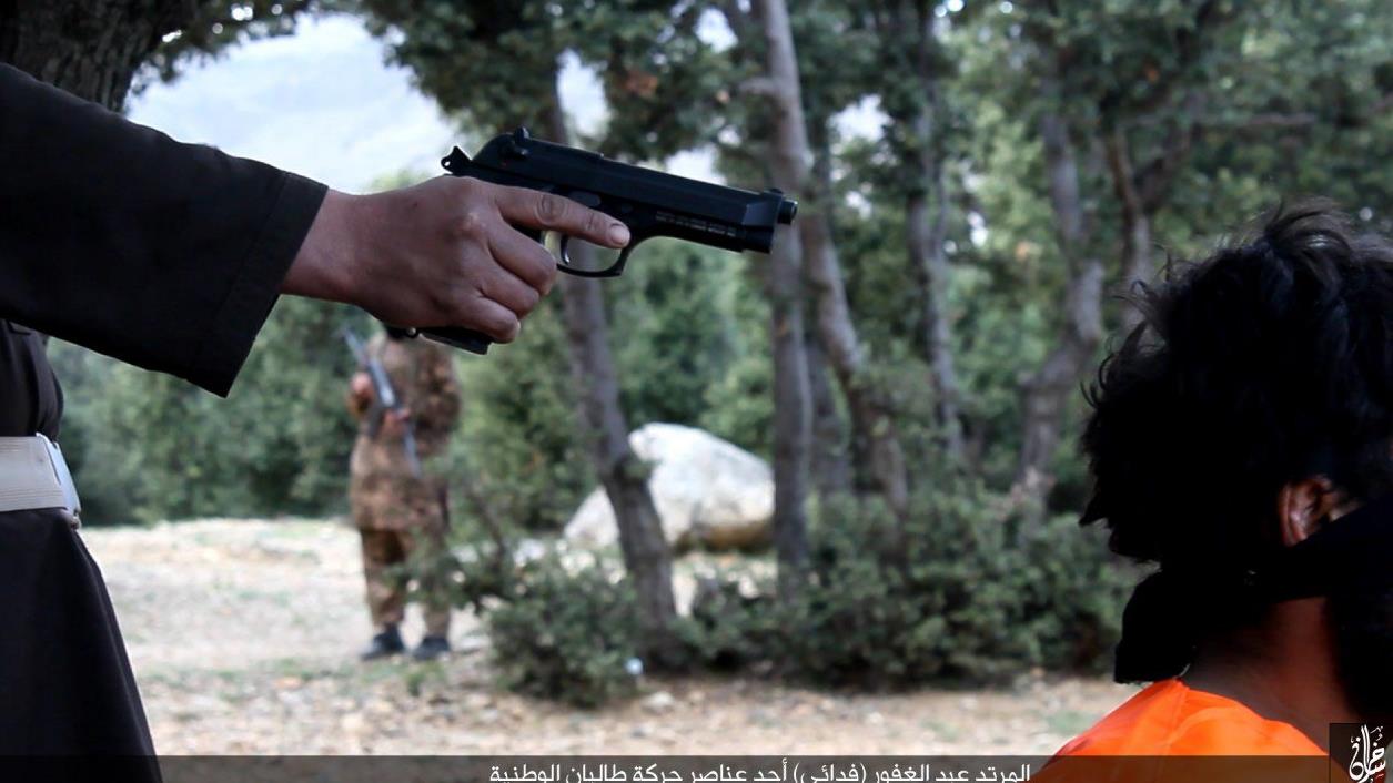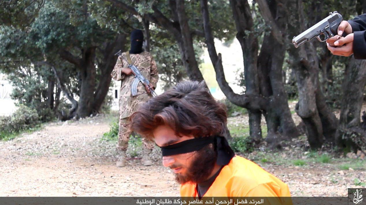 En las imágenes, subidas la tarde del domingo en las redes sociales, se ve a tres personas vestidas de naranja con los ojos vendados y las manos atadas. Les dispararon un tiro en la cabeza. No se ve la cara del verdugo.