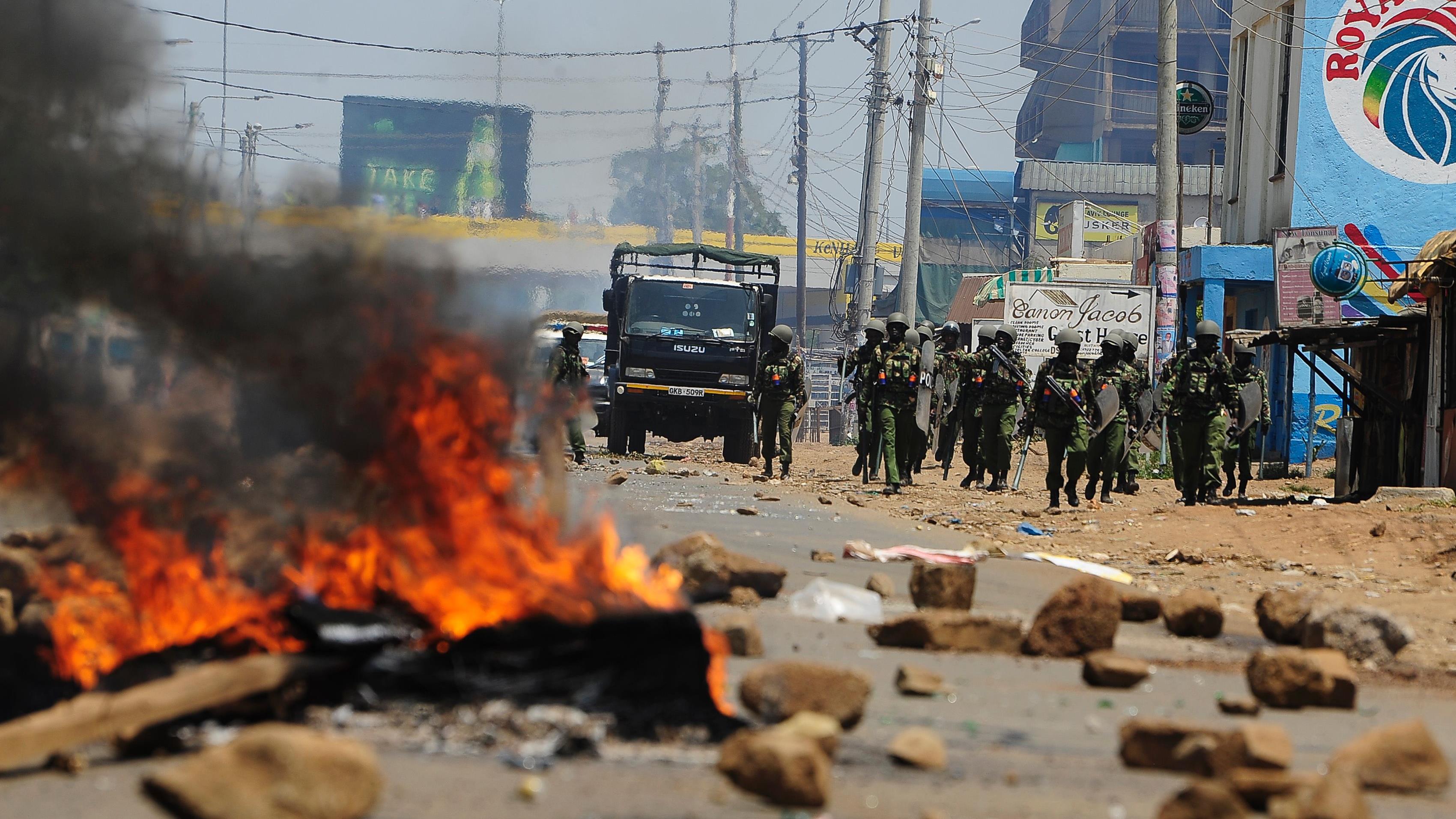 Los disturbios han estallado este miércoles en Mathare después de que decenas de personas se echaran a las calles para protestar contra un supuesto fraude electoral. Manifestantes armados con palos han bloqueado las calles con barricadas e incendiado neumáticos.