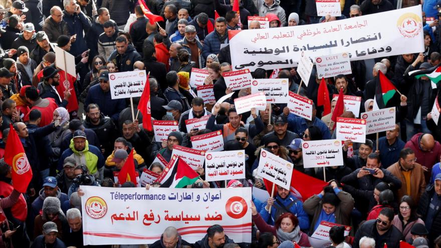 El sábado, el poderoso sindicato Unión General de Trabajadores de Túnez (TUGTT) y partidos aliados organizaron su propia protesta, lo que llevó a miles de simpatizantes a las calles contra Said en lo que parecía ser la mayor manifestación en su contra hasta el momento.