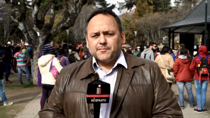 Esta es la ciudad de Esquel en la provincia de Chubut, en la Patagonia Argentina, a pocos kilómetros de aquí, el 1 de agosto, desapareció Santiago Maldonado, a manos de la Gendarmería Nacional y en el marco de su operativo sobre la ruta 40. Es por eso que hoy a dos meses de esa desaparición, también aquí piden la renuncia de la ministra de Seguridad Patricia Bullrich.
