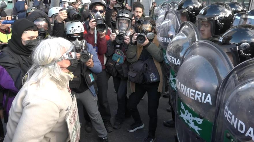 Todas las semanas reprimen, dijo a HispanTV el sacerdote Padre Paco, quien refirió que la semana pasada se llevaron presos a tres fotoperiodistas porque no quieren que muestren lo que ocurre, siempre llevan presos, siempre hay muchos heridos es una forma de disciplinar, de domar como dicen ellos.