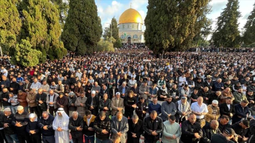 Más de 120 000 fieles se reunieron el viernes en la Mezquita Al-Aqsa para celebrar el rezo colectivo del Eid, y aprovecharon la oportunidad para expresar su apoyo a la resistencia y lucha armada contra la ocupación israelí.