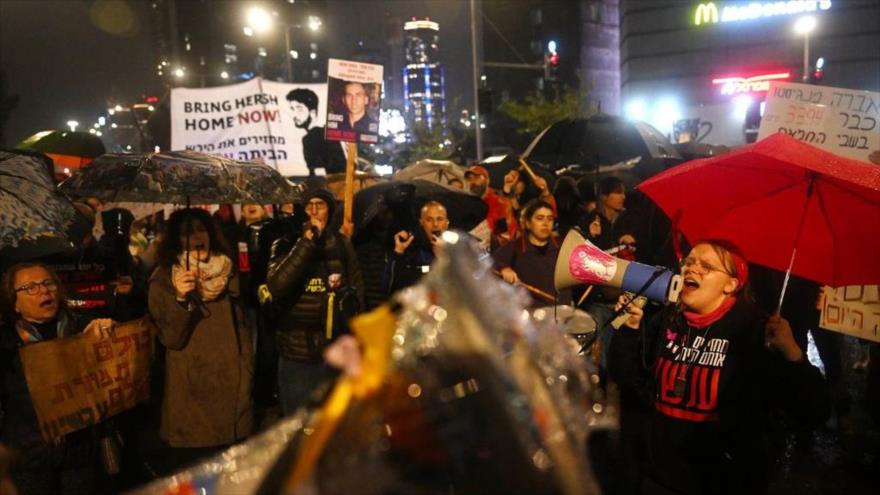 Los congregados reclamaron a Netanyahu un acuerdo inmediato con el Movimiento de Resistencia Islámica de Palestina (HAMAS) para liberar a sus los retenidos.