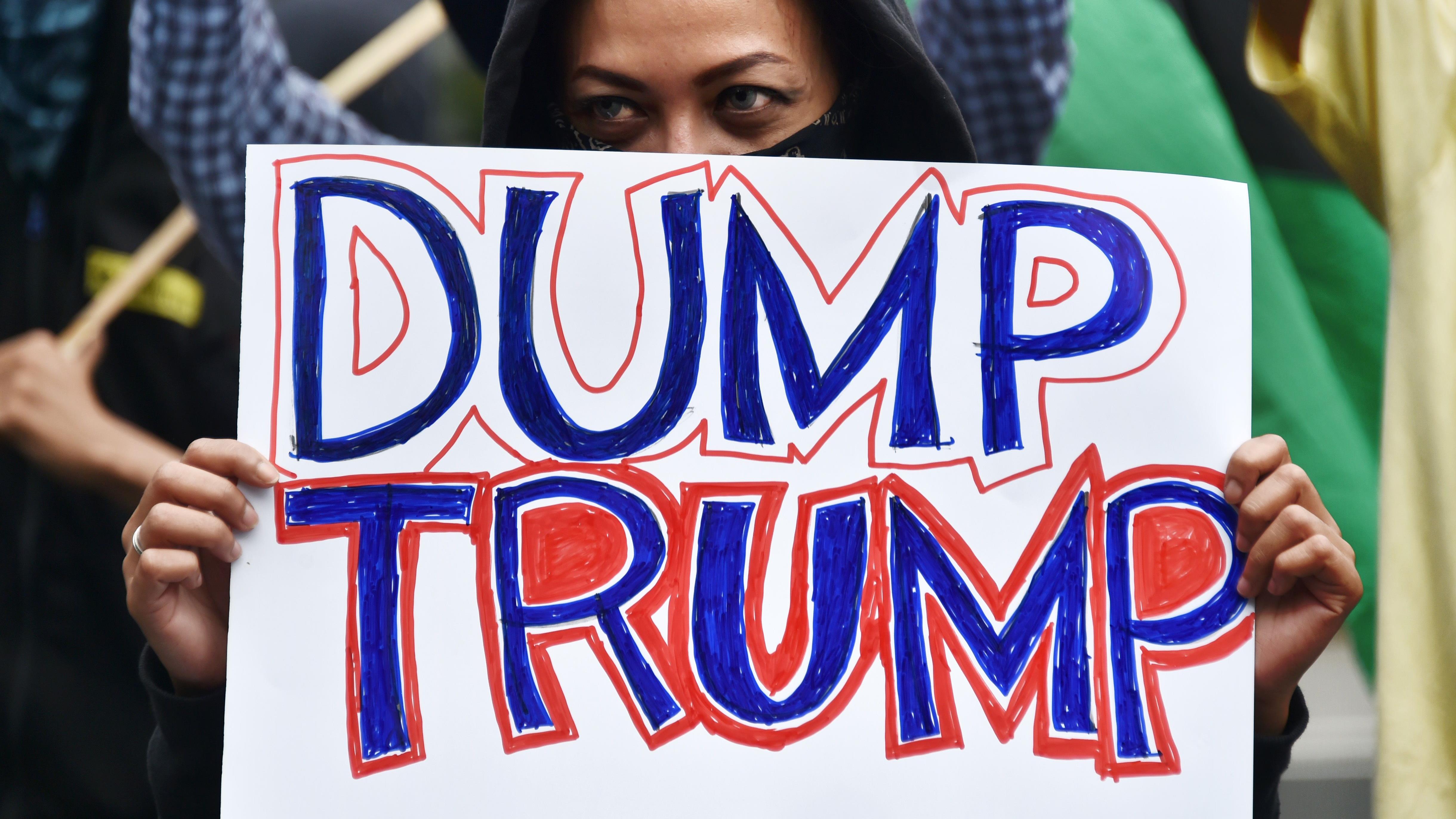 Concentrados frente a la embajada de Estados Unidos en Yakarta (capital indonesia), los manifestantes han rechazado las políticas racistas e islamófobas de Trump, y han exigido la inmediata derogación de su orden ejecutiva antimigratoria.