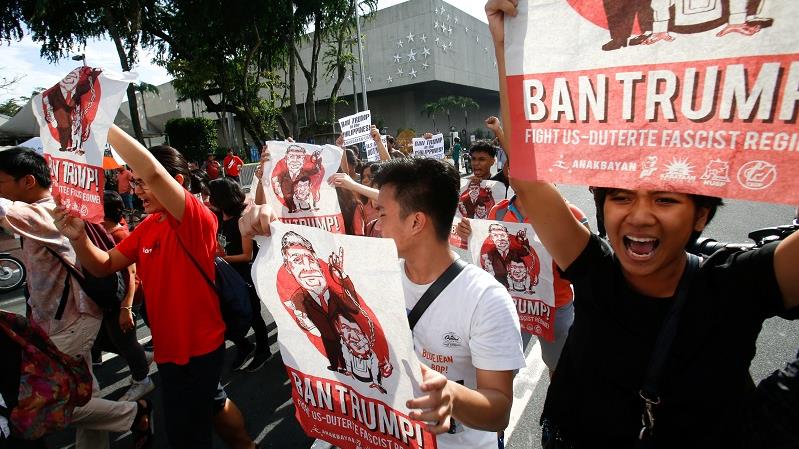 Una ola masiva de marchas a lo largo y ancho de Filipinas rechazan la llegada al país asiático del presidente estadounidense y sus posturas “sexista, racista y militarista”.