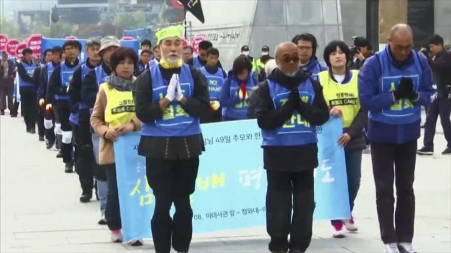 Se manifiestan en Corea del Sur contra gira del presidente de EE.UU., Donald Trump, por Asia.