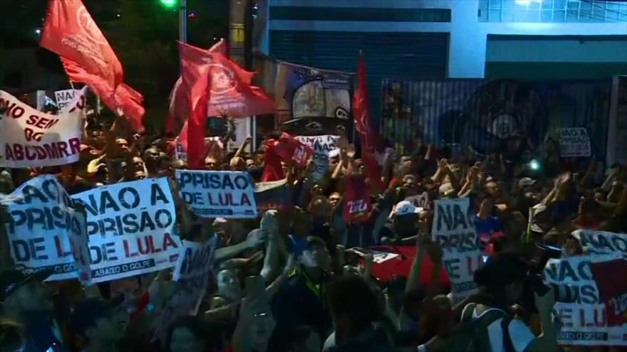 Los seguidores del expresidente de Brasil, Luiz Inácio Lula da Silva, se congregan para rechazar la orden de su encarcelación por supuesta corrupción.