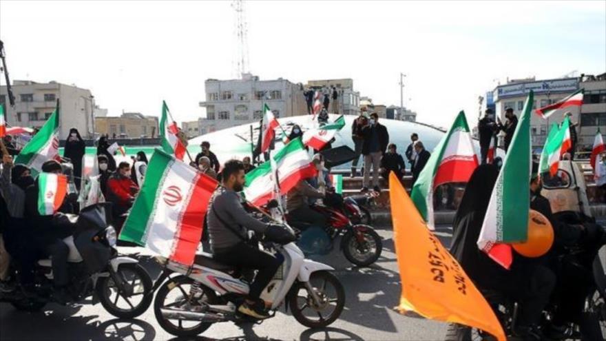 Irán conmemora el 42.º aniversario de la victoria de la Revolución Islámica. A causa de la pandemia, por prevención, los asistentes se presentan en el evento en sus coches y motocicletas, así como en la plataforma del ciberespacio.