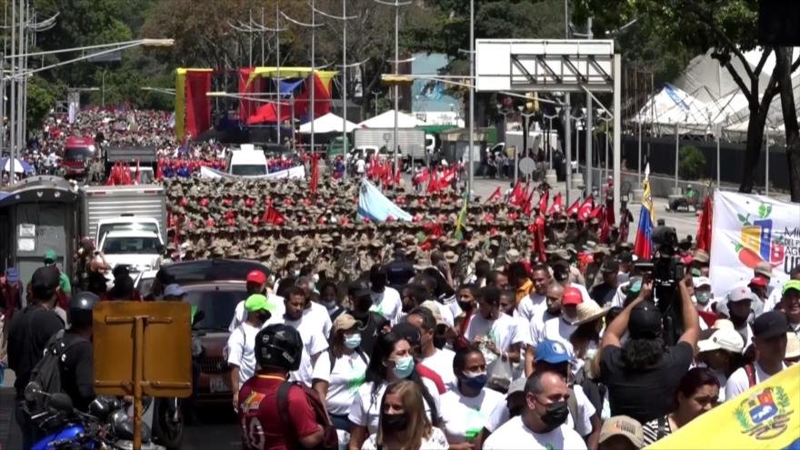 3. Miles de venezolanos marchan en Caracas para conmemorar los 20 años del regreso al poder del entonces presidente Hugo Chávez, tras el golpe de Estado de abril de 2002.