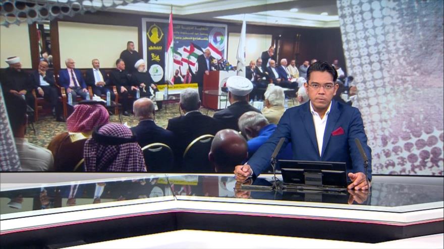 1. Participantes en el foro internacional del Apoyo a la Opción de Resistencia prometen una pronta victoria contra los crímenes de Israel.