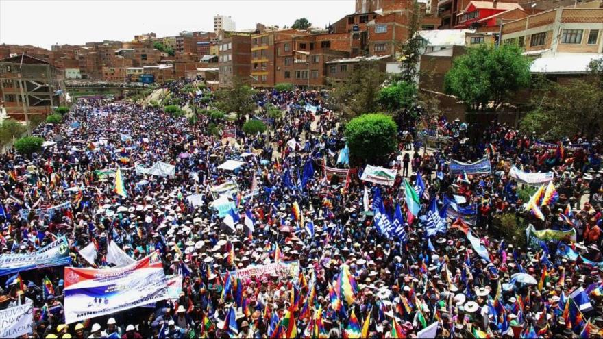 Más de 20.000 personas, entre integrantes de organizaciones campesinas, mineras, profesionales, mujeres y juventudes de los 40 municipios del departamento de sureño de Potosí, apoyaron la permanencia de Morales en el poder.