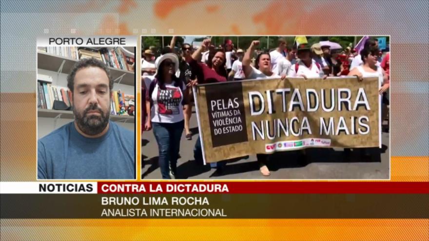 Bolsonaro, exmilitar que ha negado por completo la existencia de la dictadura militar, ha ordenado “conmemorar” en los cuarteles el quincuagésimo quinto aniversario del golpe de Estado de 1964, con el que se inició la era dictatorial que duró más de dos décadas. Este tema ha sido abordado este domingo por el analista político Bruno Lima Rocha en una entrevista con HispanTV.