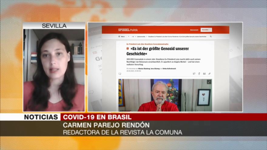 Jair Bolsonaro ha gestionado de manera ineficaz la pandemia del nuevo coronavirus, lo que “demuestra que no solamente no tiene capacidad para poder salvar a su pueblo, en este contexto, sino también una mala intencionalidad, debido a esta burla de haber minimizado el virus, de haberlo incluso negado en algún momento”, criticó el viernes Carmen Rendón Parejo, redactora de la revista española La Comuna, en una entrevista concedida a la cadena HispanTV.