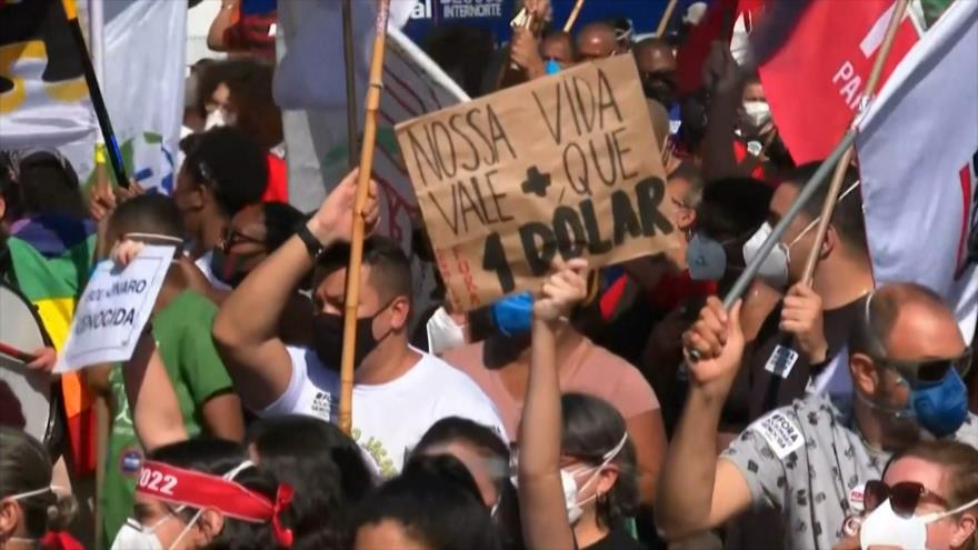 En la tercera manifestación contra Jair Bolsonaro, miles de sus opositores unieron voces para afirmar que están cansados de la forma con la que el presidente subestima las muertes por el nuevo coronavirus, causante de la COVID-19, su desprecio hacia las recomendaciones de la ciencia y su demora en la vacunación de los brasileños.