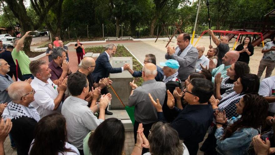 “Construimos una plaza aquí para que los niños palestinos puedan jugar con sus familias mientras Israel mata a muchos niños en Gaza. Es muy importante saber que esto es una expresión de la solidaridad de los residentes de la ciudad con la lucha del pueblo palestino”, expresó el alcalde en el acto.