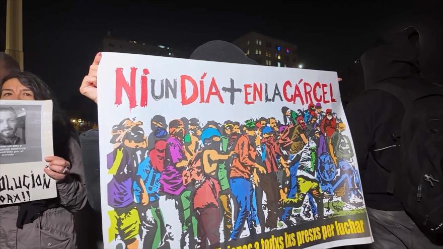 Presos políticos mapuche, luchadores sociales de Chile, Colombia y Perú, entre otros, fueron nombrados en el acto frente a la casa de gobierno chilena.