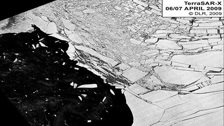 La investigación ha usado datos de velocidad de movimiento del hielo obtenidos por satélites como el Envisat y destaca que en los últimos 20 años muchas de las barreras más septentrionales se han estrechado y, en algunos casos, desaparecido en forma de icebergs.