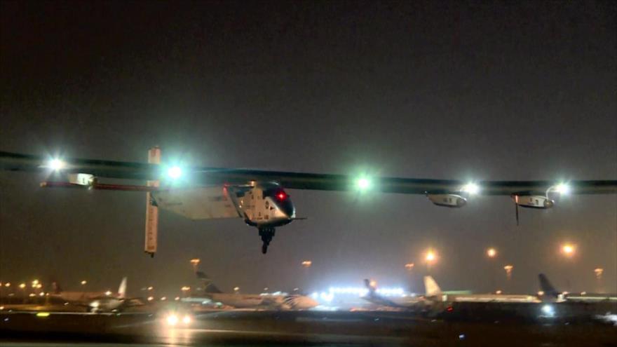 El Solar Impulse 2, que pesa 1, 5 toneladas y es tan ancho como un Boeing 747, vuela a una velocidad promedio de 50 km/h debido a baterías que almacenan la energía solar captada por unas 17 mil células fotovoltaicas instaladas en las alas.