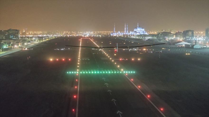 La nave ha aterrizado a las 04h05 GMT de este martes en el aeropuerto de Abu Dabi (la capital de Emiratos Árabes Unidos), desde donde había emprendido su épica travesía de 40.000 kilómetros (25.000 millas) hace más de un año.