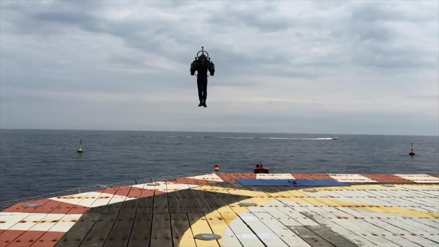 En uno de los vídeos, el propio inventor del Jetpack, David Mayman, se la coloca a la espalda y se eleva por los aires, mostrando al público del Principado de Mónaco las capacidades de su dispositivo.