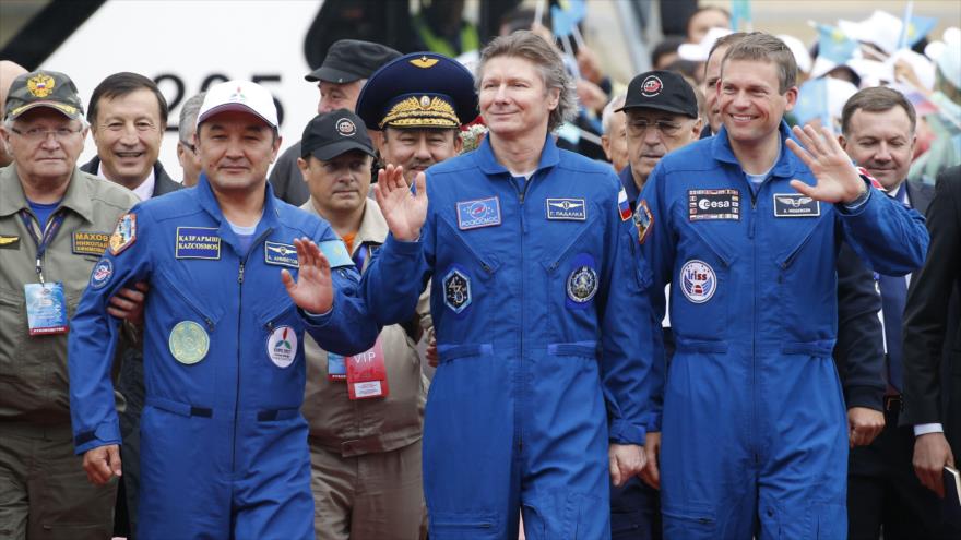 "Ahora, usted tendrá que vivir un poco en la Tierra", bromeó Talgat Musabayev, jefe de la agencia espacial kazaja Kazkosmos.