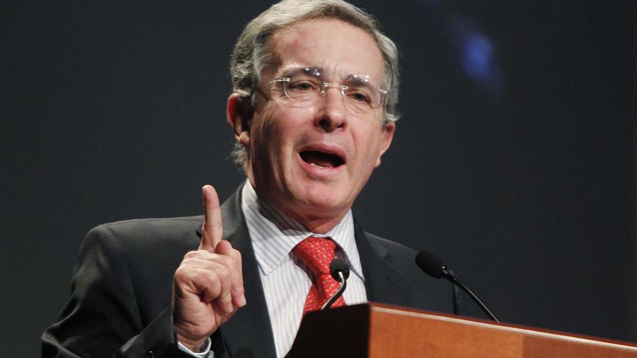 El expresidente colombiano, ha expresado en varias ocasiones su postura opositora hacia las negociaciones de paz entre el Gobierno de Juan Manuel Santos y las FARC, alegando que el actual mandatario está entregando Colombia a la guerrilla mediante dichas negociaciones.