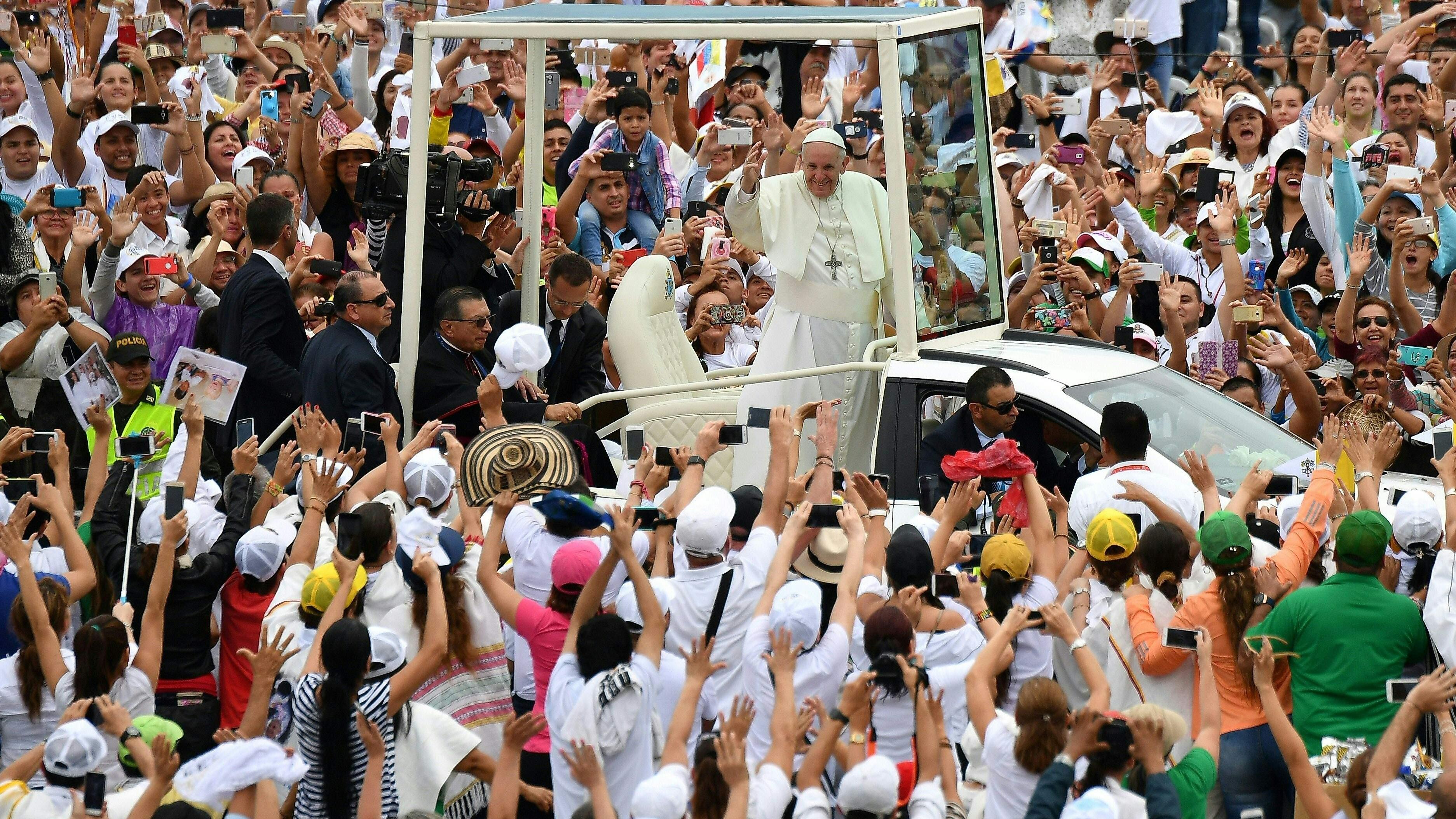 “Sobre todo, gracias, Su Santidad, por venir hasta Colombia, a esta tierra fértil y hermosa, a acompañarnos, a estimularnos, a dar con nosotros el primer paso hacia la reconciliación”, dijo el jueves el mandatario colombiano al recibir al sumo pontífice en la Casa de Nariño (sede de la Presidencia).