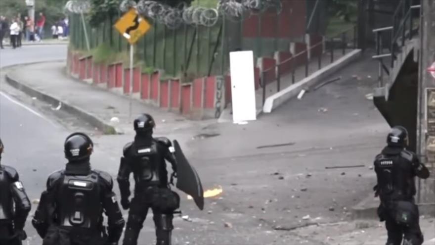 Los manifestantes se enfrentaron el jueves con la Policía cerca de la Universidad Distrital de Bogotá, donde lanzaban piedras y cócteles molotov contra los agentes antidisturbios que respondieron con gases lacrimógenos.