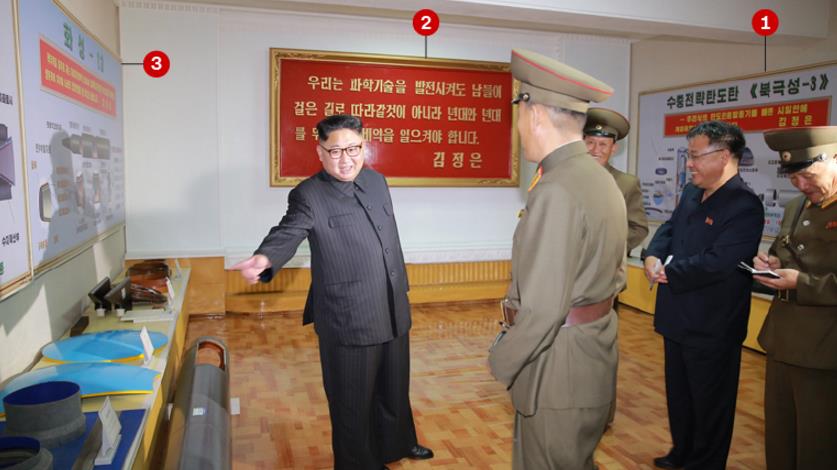 En una de las fotos aparece un cuadro instalado en la pared, en el que se menciona el misil Pukguksong-3, potencial sucesor de las dos versiones anteriores del proyectil basado en combustible sólido.