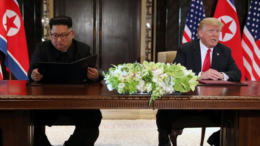 En el encuentro de Singapur, el líder norcoreano prometió contribuir a la desnuclearización completa de la zona y el inquilino de la Casa Blanca ofreció garantías de seguridad a Pyongyang y el levantamiento de las sanciones.