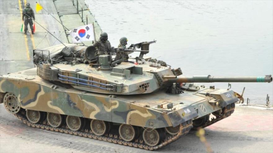 • Un tanque del Ejército surcoreano durante una maniobra cerca de fronteras con Pyongyang.