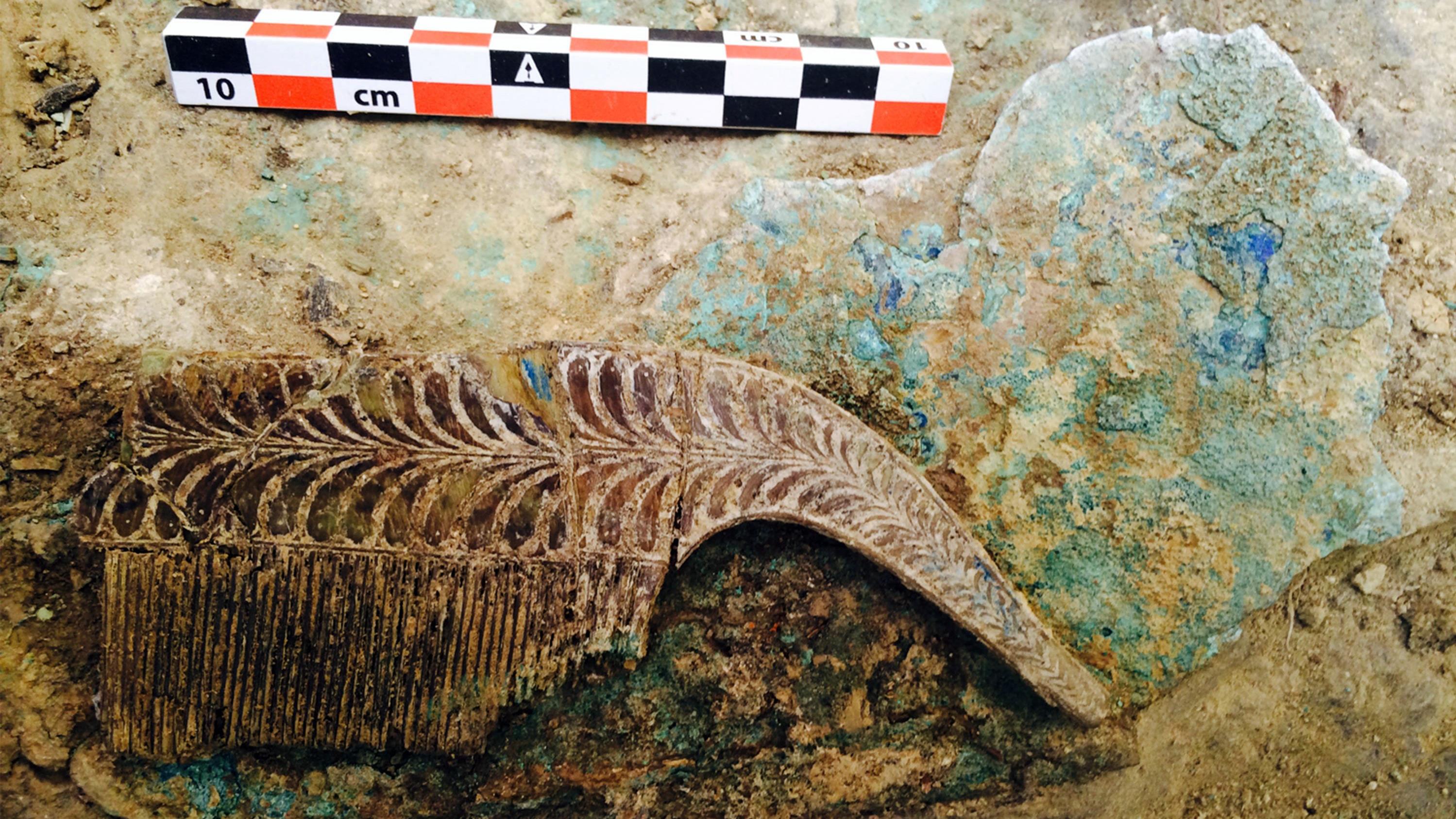 Los arqueólogos quedaron sorprendidos por la cantidad de objetos funerarios tradicionalmente 'femeninos' enterrados con el guerrero, incluyendo peines, perlas y un espejo. Según afirman, este hecho "desafía la creencia común de que las joyas eran enterradas únicamente con mujeres ricas".