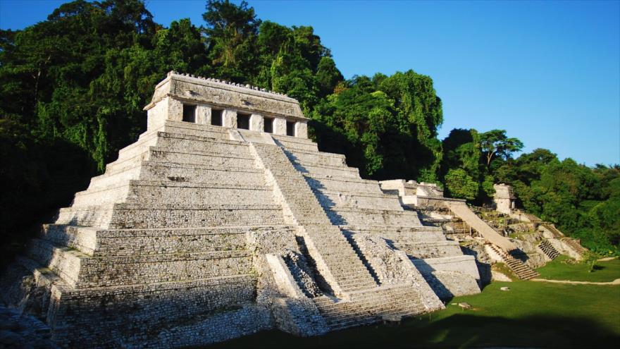 El templo donde se encuentra la deslumbrante tumba de Pakal en una húmeda zona selvática es una pirámide escalonada casi vertical, con tres tableros de roca decorada en estuco con inscripciones jeroglíficas sobre la historia de la dinastía iniciada por Pakal el Grande.