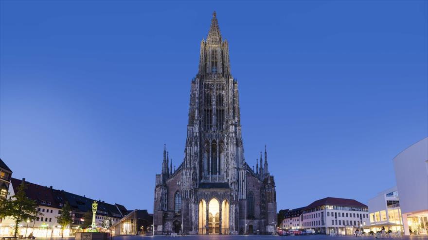 La magnífica torre de 162 metros de altura de la catedral de Ulm domina la ciudad alemana del mismo nombre, que se encuentra en el río Danubio, en Baden-Württemberg.
