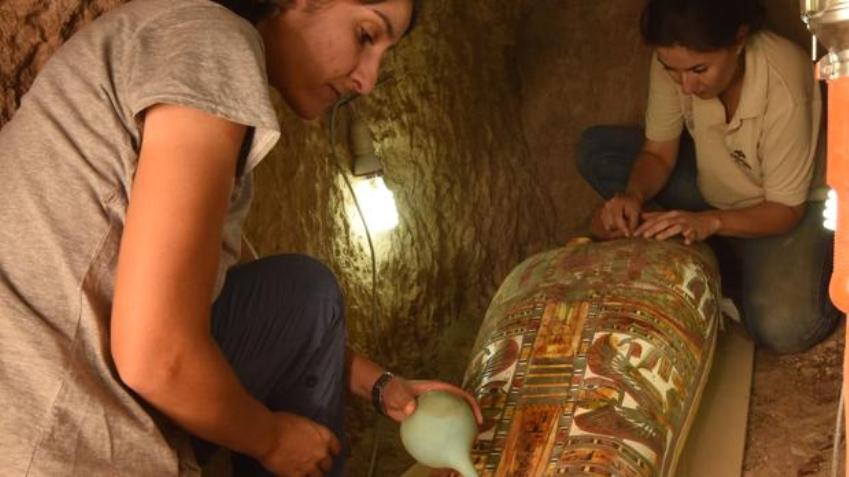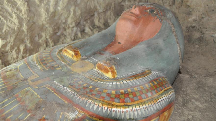 "Hallamos el nicho en el exterior del muro perimetral sur del templo. El sarcófago antropomorfo estaba comido por las termitas. Apenas se conservaban los pies y la cara. Dentro, sin embargo, encontramos un cartonaje muy frágil, pero que mantiene una decoración muy colorida. Es una auténtica preciosidad", relató el domingo al rotativo español El Mundo la egiptóloga Myriam Seco, que dirige la misión española encargada del caso.