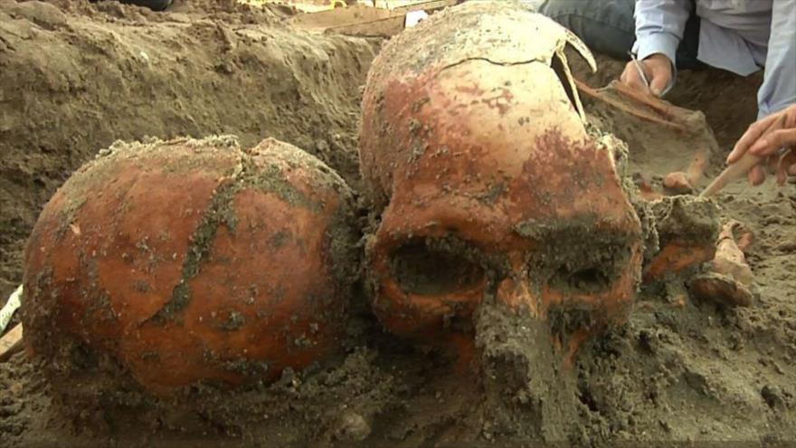 Por la forma en que los encontraron, concluyeron que fueron sepultados uno encima del otro, puestos boca abajo, pero con la cara viendo hacia el frente y las piernas dobladas hacia atrás.