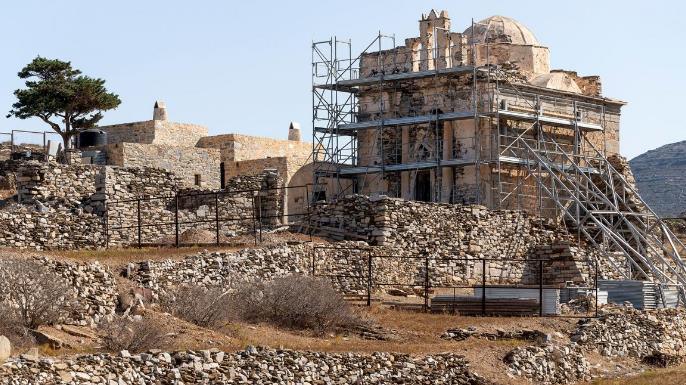 La tumba, descubierta en la isla de Sikinos, con forma de caja fue hallada intacta en la cripta del monumento Episkopi, un inusual memorial funerario de la era romana que fue convertido más tarde en una iglesia y monasterio bizantino.