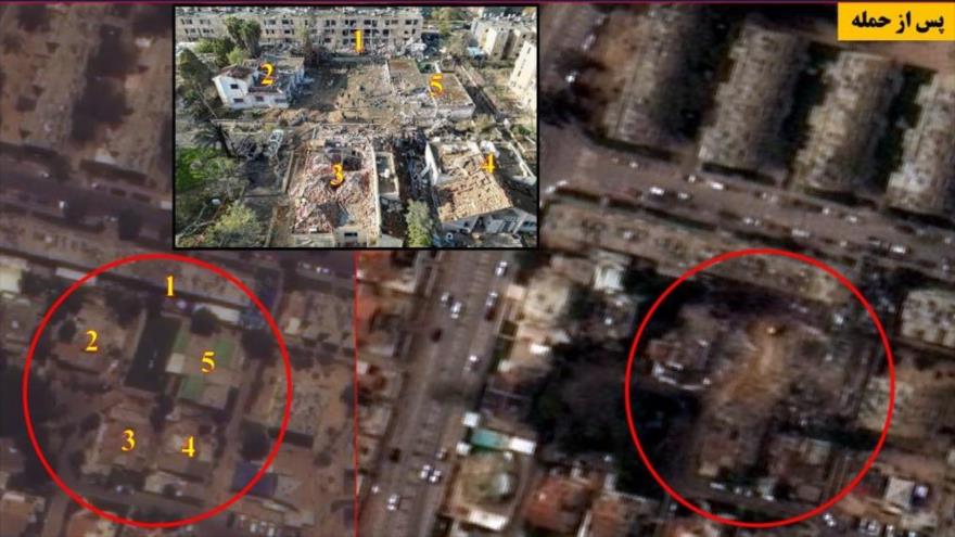 Asimismo, nuevas imágenes satelitales evidencian parte de las consecuencias de los ataques iraníes sobre objetivos sensibles israelíes en los territorios ocupados palestinos.