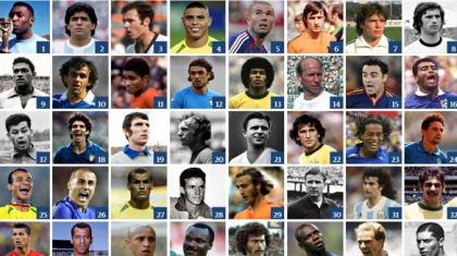 Los diez primeros de este listado, que incluye a 34 jugadores sudamericanos, son además de Pelé y Maradona, Franz Beckenbauer de Alemania, Ronaldo de Brasil, Zinedine Zidane de Francia, Johan Cruyff de Holanda, Lothar Mattäus de Alemania, Gerd Müller de Alemania, Garrincha de Brasil y Michel Platini de Francia.