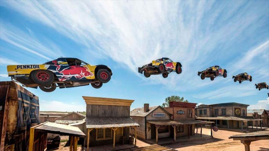 Su arma para conseguirlo: una camioneta pick up Pro 2 de 900 caballos de potencia, vehículo que le permitió surcar por los aires en un pueblo abandonado de estado de Nuevo México.
