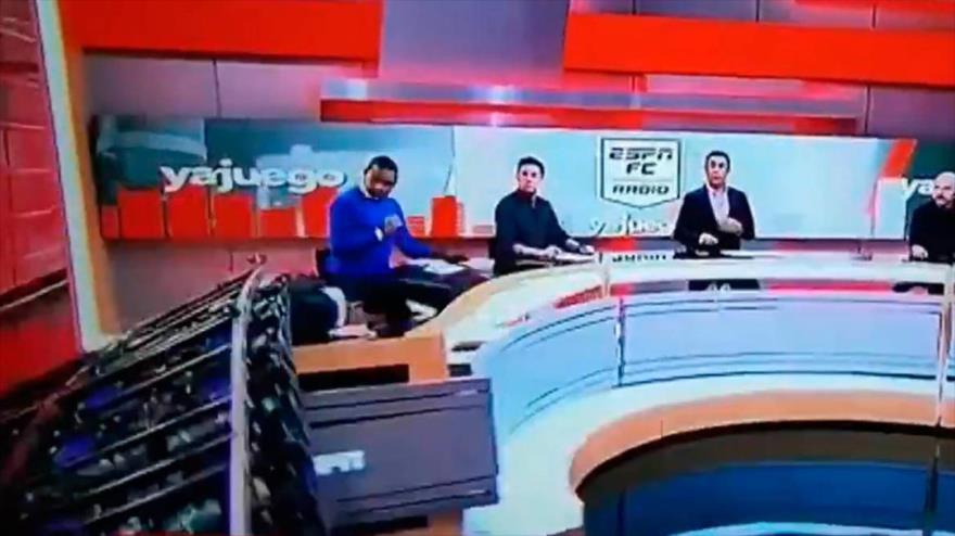 El accidente ocurrió el miércoles en el programa de deportes ESPN de Colombia, por lo que la emisión tuvo que ser suspendida a fin de prestar atención médica al conductor Carlos Orduz.