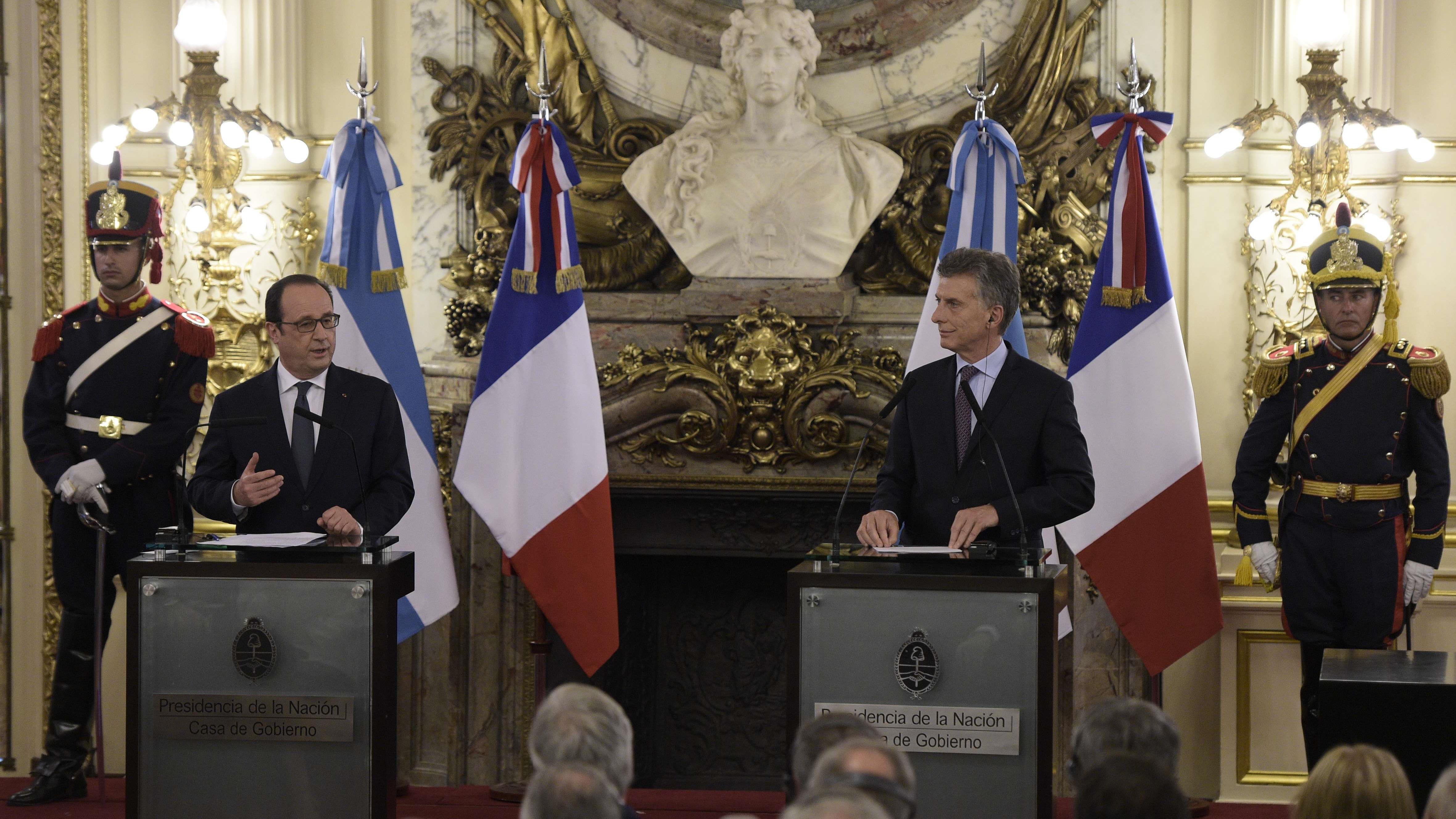 Hollande declaró que Macri "abrió un nuevo capítulo en Argentina, para que sea más abierta y más creíble y Francia quiere ayudarlo".