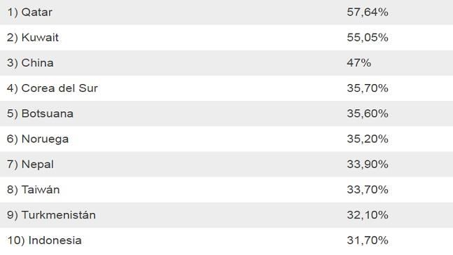 China con casi 1400 millones de habitantes se encuentra en las antípodas de Catar y Kuwait en términos de complejidad socio-económica y cultural. El gigante asiático tiene un ahorro del 47 % que prácticamente triplica al de EE.UU., el cual se sitúa en un modesto 16 %.