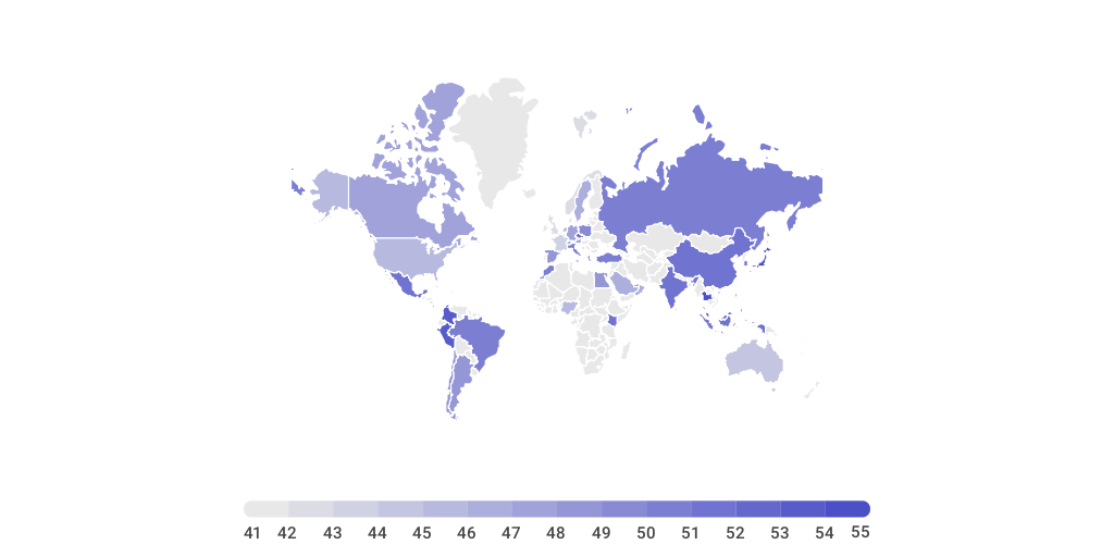El estudio A future that works: automation, employment and productivity, elaborado el pasado enero por el instituto McKinsey, examina el potencial de incorporación de inteligencia artificial en el trabajo de 46 países, que representan alrededor del 80% de la fuerza de empleo mundial. En el mapa se muestra el porcentaje de actividades laborales que podrían ser automatizadas en cada uno de ellos.